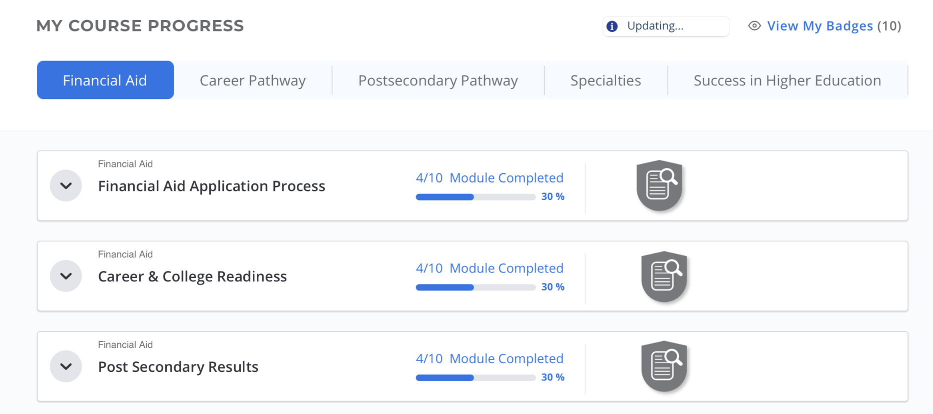 Course: Financial Aid Application Process - Total 3 hours - Scholarship Applications, National Merit Scholarship Program